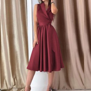 Dies Midi Dress Casual Sleeveless Belt Dress Female New
